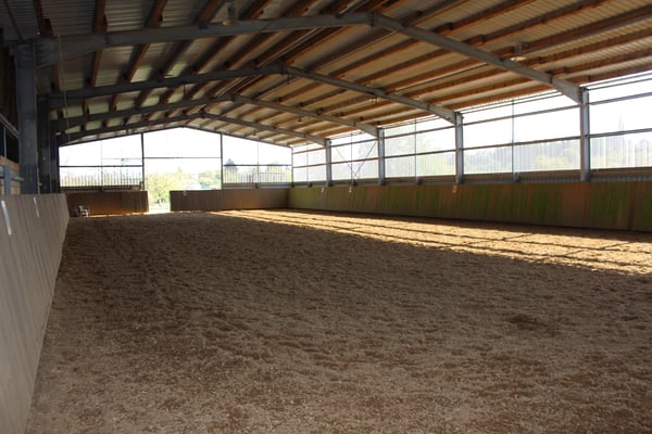 Neben einem traumhaften Ausreitgelände bieten wir eine 300-m Ovalbahn, eine luftige Reithalle, Dressurviereck,